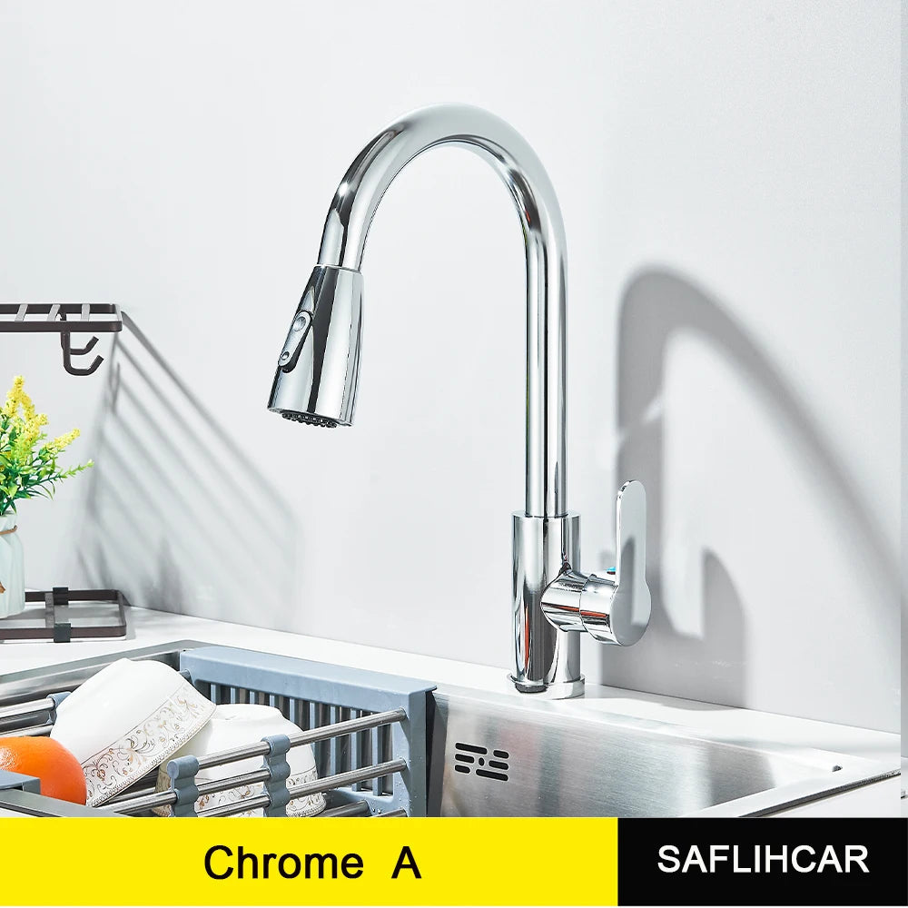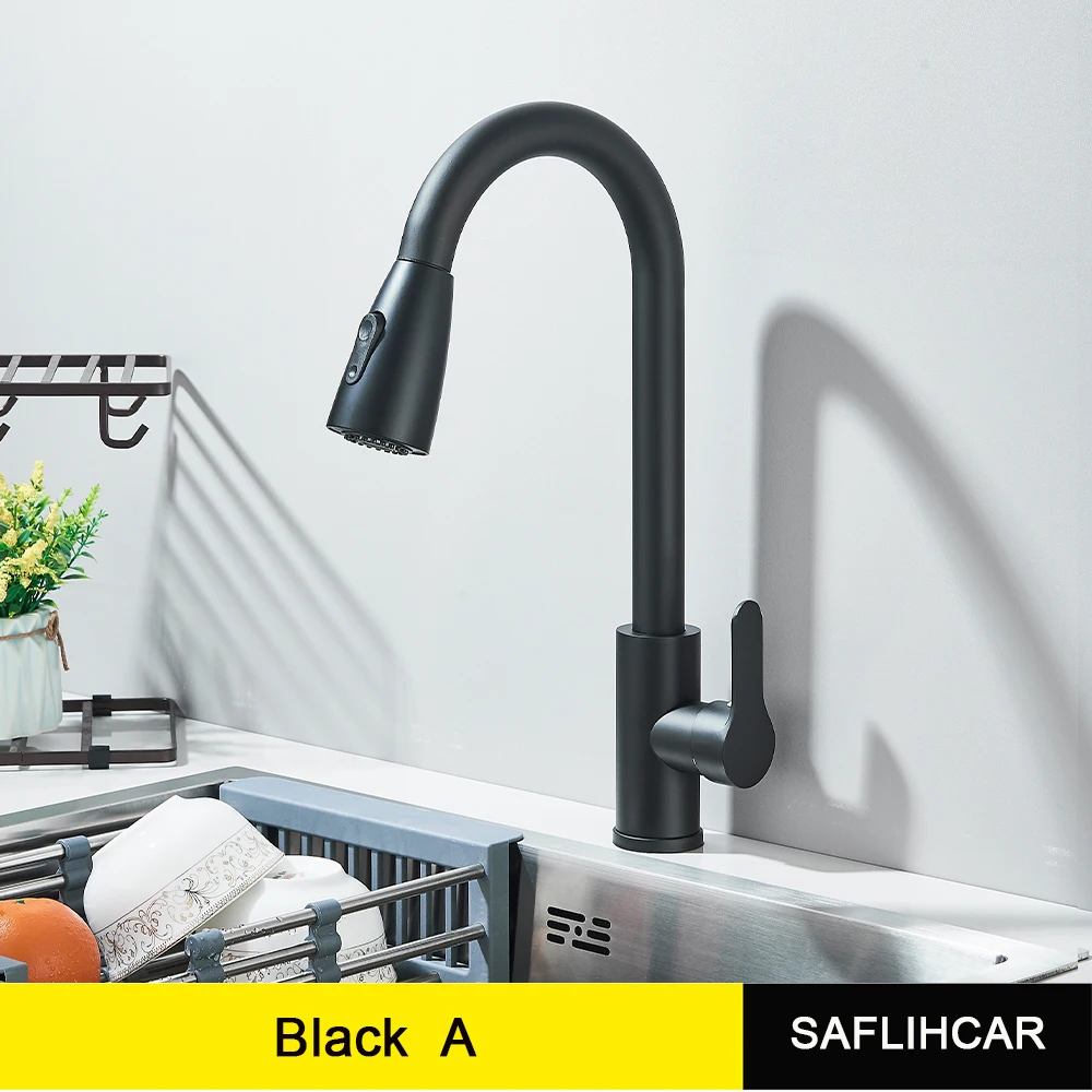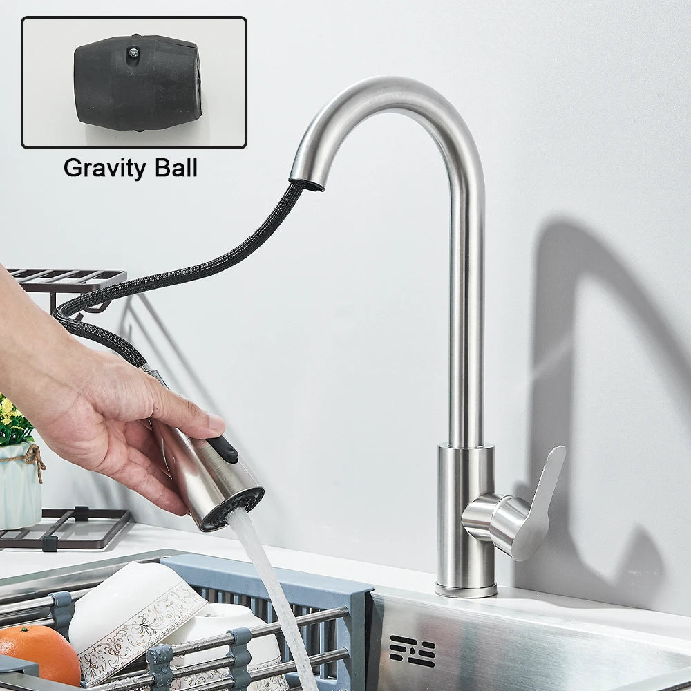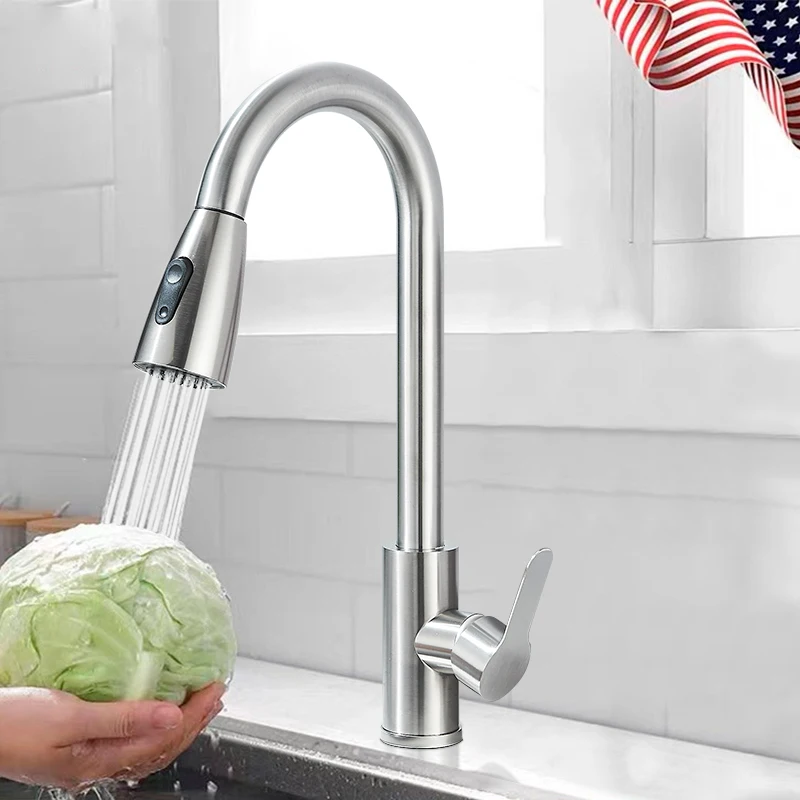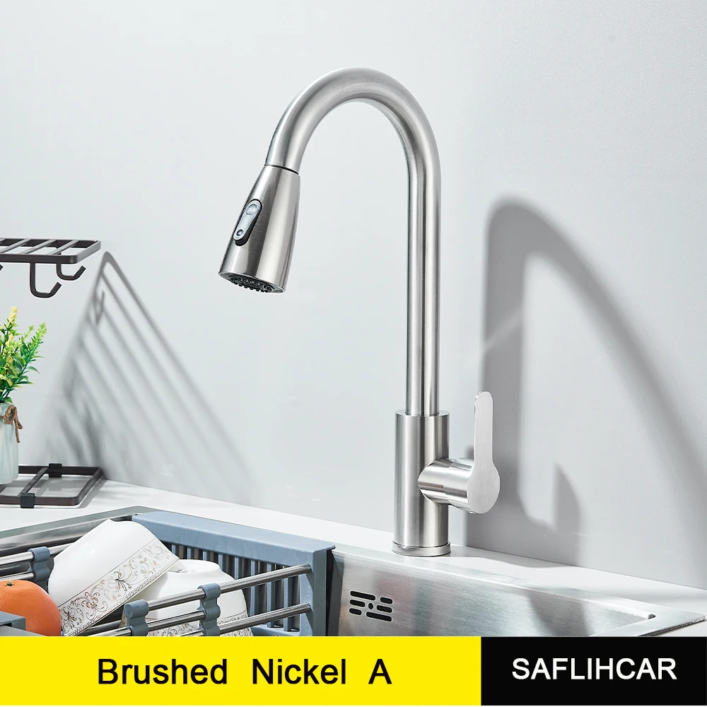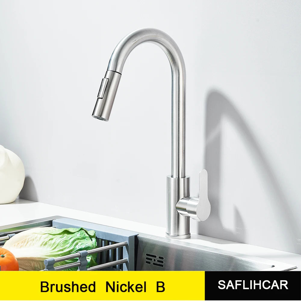 Brushed Nickel Kitchen Faucet Single Handle Hot and Cold Mixer Tap Stream Sprayer Chrome/Black Pull Out Faucet